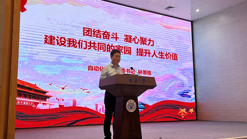 党委书记林景栋作了题为“团结奋斗 凝心聚力 建设我们共同的家园”的致辞。他向同学们介绍了学院的发展历程和学院涌现的数位自动化领域的知名学者,详细讲解了学院实施的有组织团队化本科人才育人机制,希望同学们通过对学院历史沿革和培养机制的学习,了解学院,走进学院,融入学院;在有组织团队化管理模式下,早进实验室、早进科研团队,提升学术能力,培养学术志趣,获得长足发展。他希望全体师生凝心聚力,共同推进学院高质量发展与高质量人才培养。