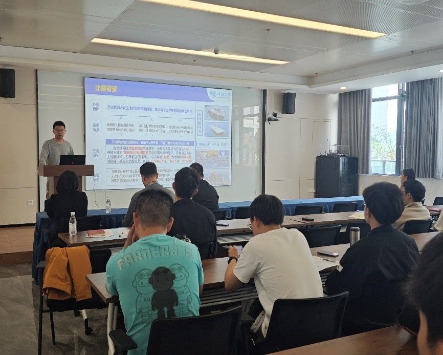 张俊楠和黄祎带领大家学习《机械臂规划与操作》。张俊楠从国家战略需求层面,强调了发展机械臂高水平技术是顺应国家产业发展潮流,实现高水平科技自立自强的重要基础,他从机械臂技术层面,详细介绍了双臂机器人的路径规划、轨迹规划算法和双臂避障规划工作。黄祎讲解了海上无人船-机械臂系统抓取操作MBZIRC比赛经历,他在比赛中主要解决了海洋环境下的抓取难题和复杂环境下物体识别难题,为各位党员同志提供了开展科研的方法和思路。
