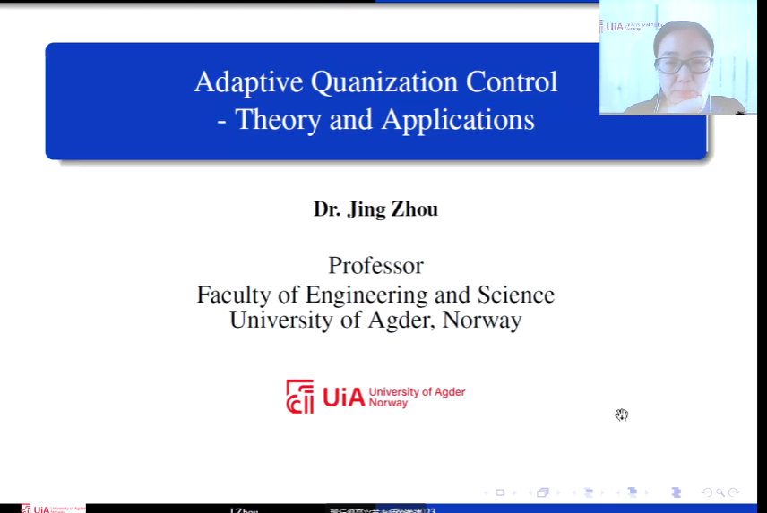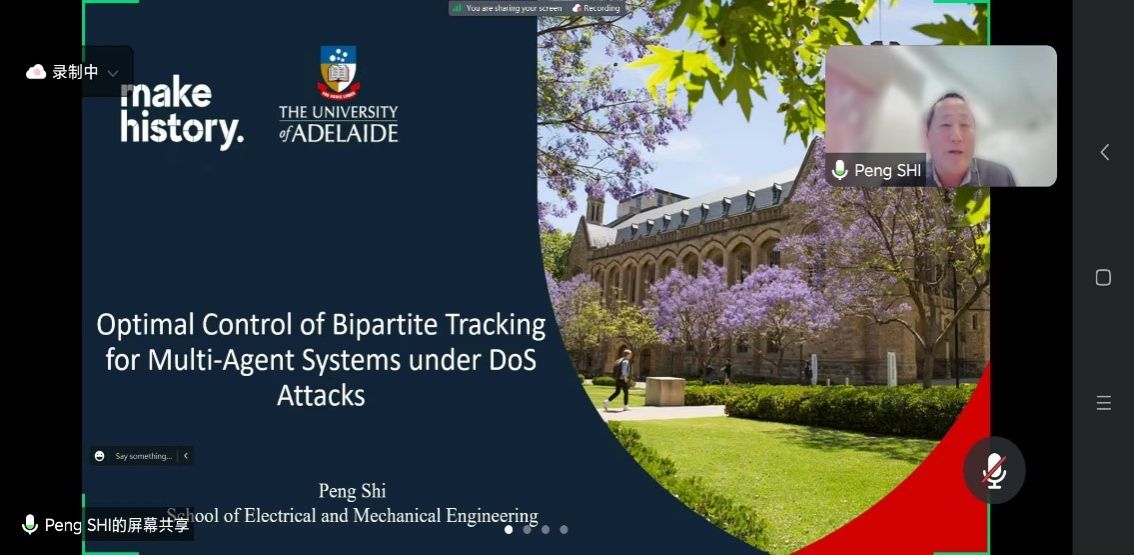 Kwong Sam Tak Wu教授详细介绍了他在基于机器学习和深度神经网络的视频编码的最新研究成果,并探讨了该方法在现实世界的应用;Peng Shi教授就具有多个非自治领导的异构多智能体系统在拒绝服务(DOS)攻击下的二分平均跟踪控制问题做了汇报和分享,提出了一种新型的分布式最优控制器;Hak-Keung Lam教授就基于模糊模型的控制系统和方法进行了简要回顾,并对隶属函数相关稳定性进行了分析;Jing Zhou教授就其在“Adaptive Quantized Control of Uncertain Dynamic Systems”的研究讨论了动态系统在存在不确定性、非线性动力学和量化的情况下的自适应控制;Zhan Shu教授提出了一种延迟触发策略和随机验证方案,并验证了该方法的有效性。