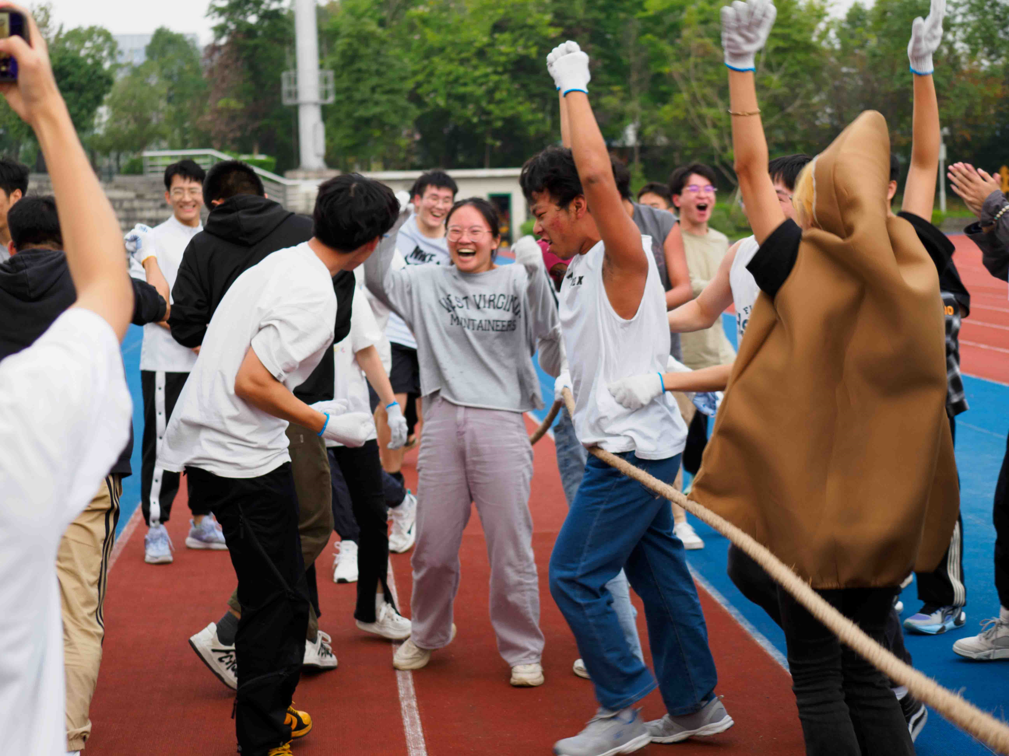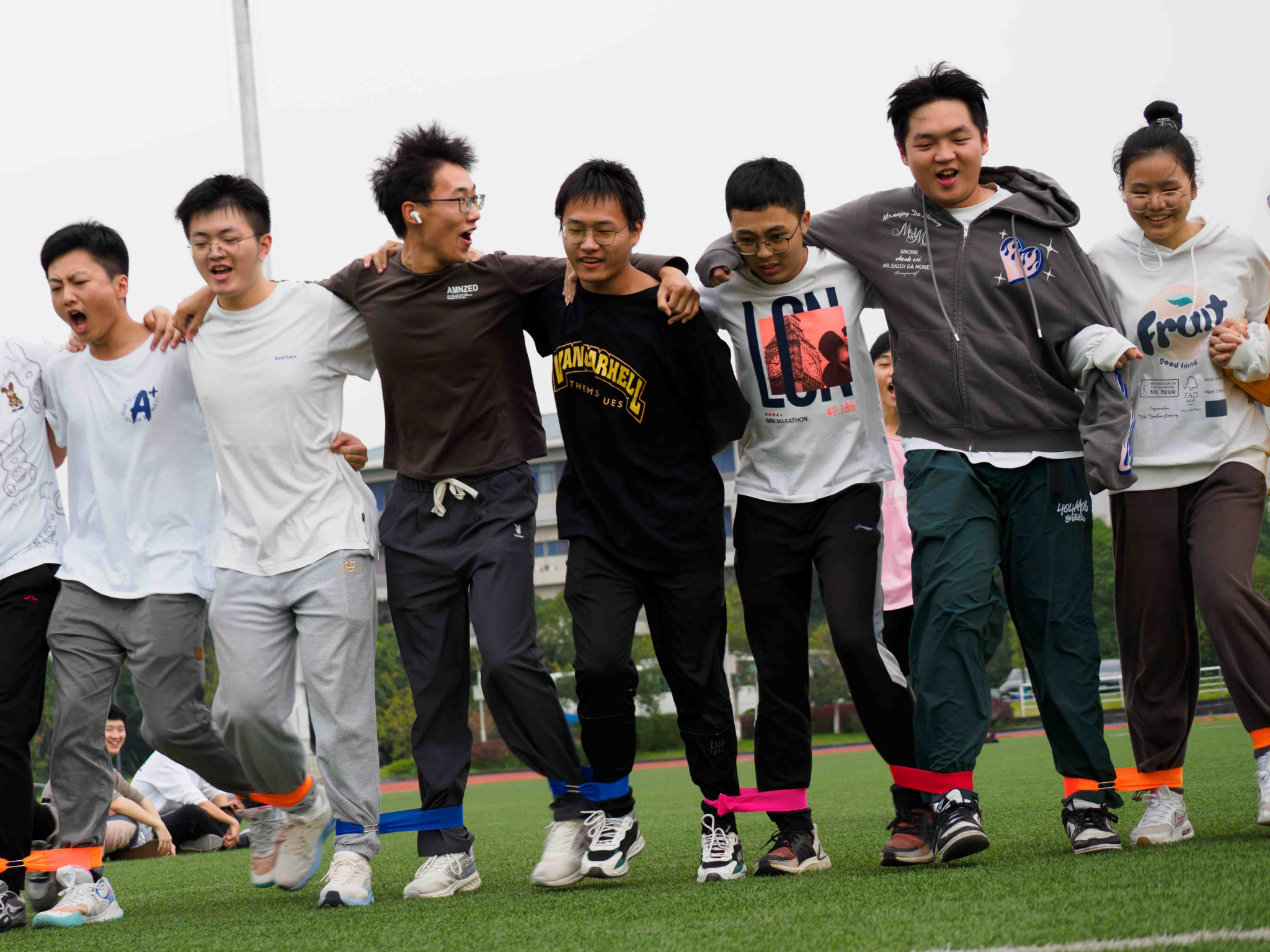 本次趣味运动会包括了九人十足、螃蟹背西瓜、一圈到底、集体长绳、乒乓球接力、拔河共六个运动项目。比赛过程中,同学们互相协作,全力投入,既赛出了个人风采,又展现了团队凝聚力。活动现场的氛围热烈又紧张。