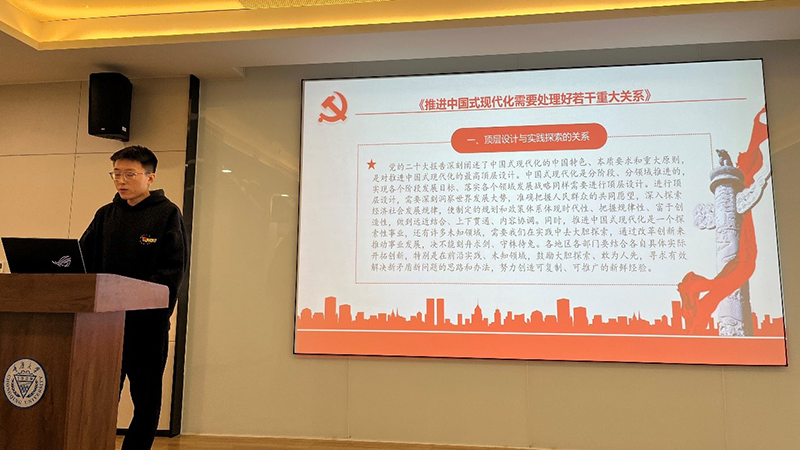 在“推进中国式现代化需要处理好若干重大关系”内容的学习过程中,全体参会人员还对顶层设计与实践探索的关系,顶层设计与实践探索的关系,守正与创新的关系,效率与公平的关系,活力与秩序的关系,自立自强与对外开放的关系进行了集中学习。当前,世界百年变局加速演进,国际环境发生深刻变化,我们一定要加强思想教育,要切实把思想和行动统一到习近平新时代中国特色社会主义思想上来,不折不扣贯彻落实党中央各项决策部署。