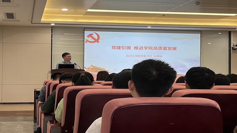 在主题党课环节,林景栋为与会人员讲《党建引领——推进学院高质量发展》主题党课。在讲授环节,林景栋围绕学习贯彻习近平新时代中国特色社会主义思想主题教育,带领大家认真学习了习近平总书记在广东、陕西、内蒙古考察时的重要讲话。随后,他从落实学校工作部署、学院领导班子建设和教职工作用发挥三个方面就高质量推动学院发展和服务学校“双一流”建设进行讲解。林景栋要求与会党员认真学习习近平新时代中国特色社会主义思想,充分发挥党员的先锋模范作用,为学院学校发展和国家建设、为第二个百年奋斗目标的实现而不懈奋斗。