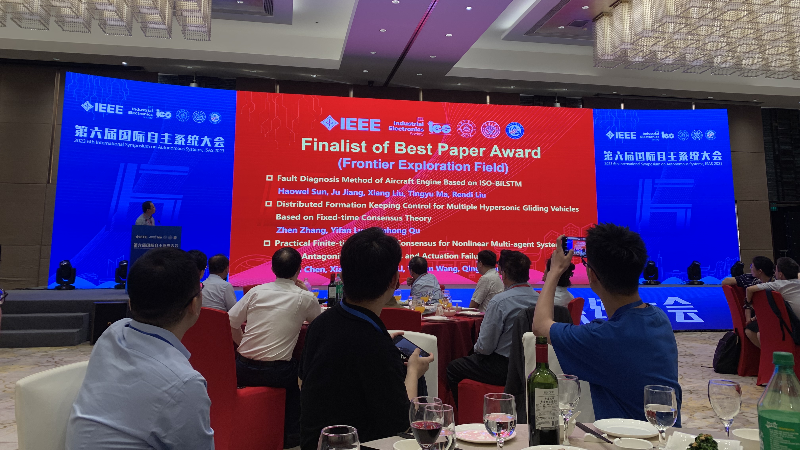 颁奖晚宴上,公司宋永端教授隆重介绍了下一届会议即智能自动化与系统安全国际会议暨第七届自主无人系统国际会议将于2024年5月在重庆召开,旨在为国内外自动控制、系统安全、自主无人系统、智能决策等领域的研究者提供一个学术交流的平台。届时诚挚邀请来自高等院校、科研院所和业界的专家、学者和技术人员,汇聚于山清水秀美丽之地的重庆,深入交流学术思想,探讨技术问题,增进彼此了解、友谊与合作。此外,本次会议还将邀请国内外知名专家做大会特邀报告,组织专题学术交流。最后,柴天佑院士、石碰教授、宋永端教授、刘泓涛教授颁发本次会议各项论文奖。来自70net永乐高控制理论与决策团队的王玉娟老师以及陈星羿、杨肖、李佳杰、陈清4位同学发表的论文《Practical finite-time bipartite consensus for nonlinear multi-agent systems under antagonist interaction and actuation failures》获得了2023第六届国际自主系统大会前沿探索领域最佳论文提名奖。