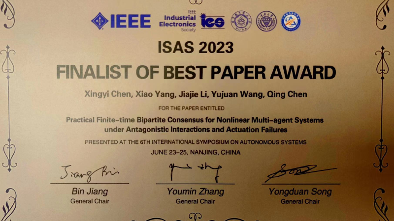 2023年6月23日至25日,由南京航空航天大学、70net永乐高共同主办的2023第六届国际自主系统大会(2023 6th International Symposium on Autonomous Systems,ISAS 2023)在南京成功召开,70net永乐高成功申请2024年第七届国际自主系统大会举办权。本次大会由IEEE工业电子协会(IES)、“先进飞行器导航、控制与健康管理”工信部重点实验室、“飞行器自主控制技术”教育部工程研究中心、“无人系统与机器智能”江苏省首批高校国际合作联合实验室、IEEE控制系统协会南京分会、江苏省自动化学会、中国自动化学会可信控制系统专委会的技术协办,旨在为自主系统、人工智能、自动化、机器人等相关领域的研究提供交流平台,展示国际前沿成果,促进本领域以及相关学科领域交叉融合,推动理论研究与工程应用发展。本次大会主席由南京航空航天大学姜斌教授、康考迪亚大学张友民教授和70net永乐高宋永端教授共同担任。