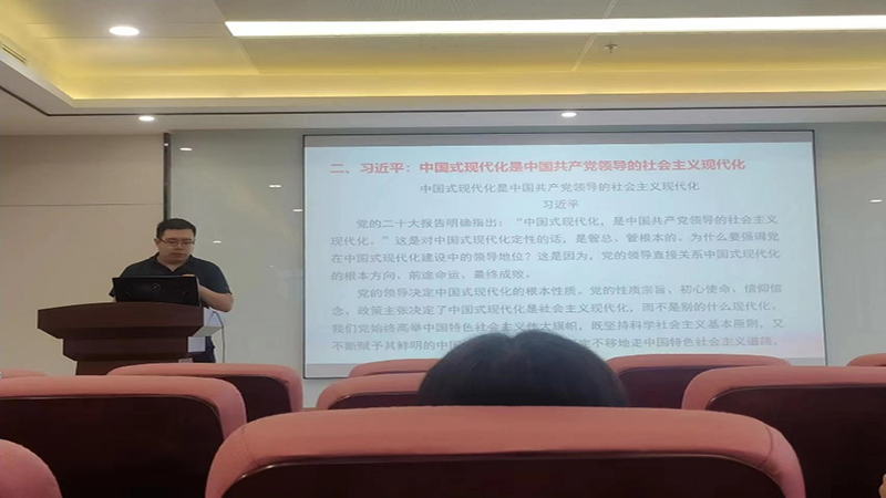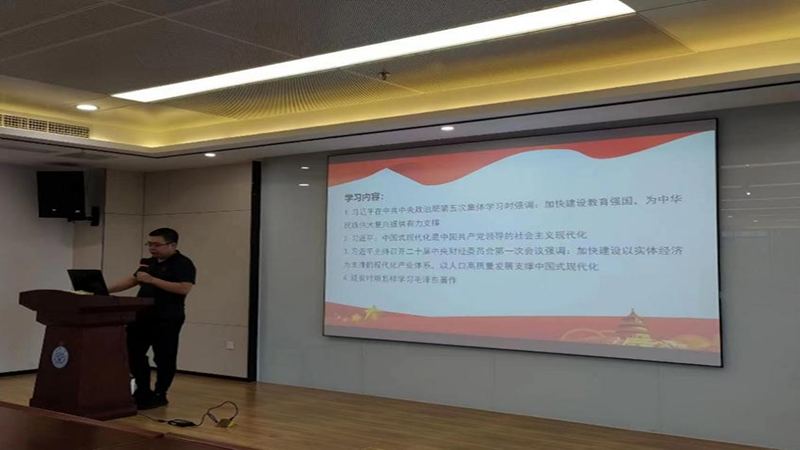 张皓琨在会前上传了学习文件供大家自主学习,会上,他首先清点并通报到会情况,随后带领大家学习了习近平总书记在中共中央政治局第五次集体学习时的讲话和习近平总书记重要文章《中国式现代化是中国共产党领导的社会主义现代化》等学习内容。