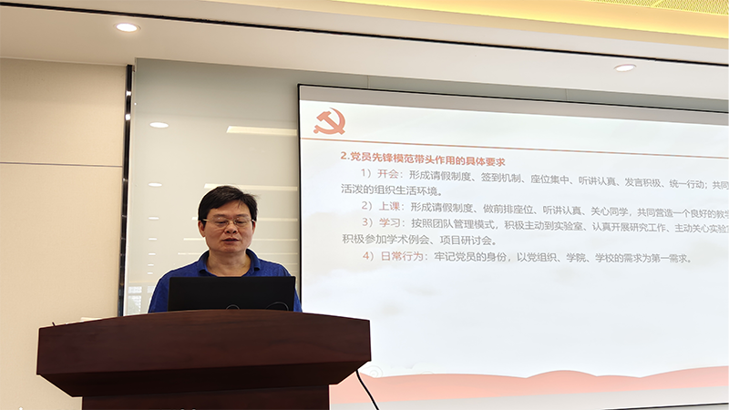 林景栋首先就近期公司党建工作开展、党员先锋模范作用发挥情况进行通报,他指出,党员要充分发挥先锋模范作用,在日常的学习、科研和生活中做表率,带动形成浓厚的学习科研氛围,以实际行动推动支部建设和学院发展。