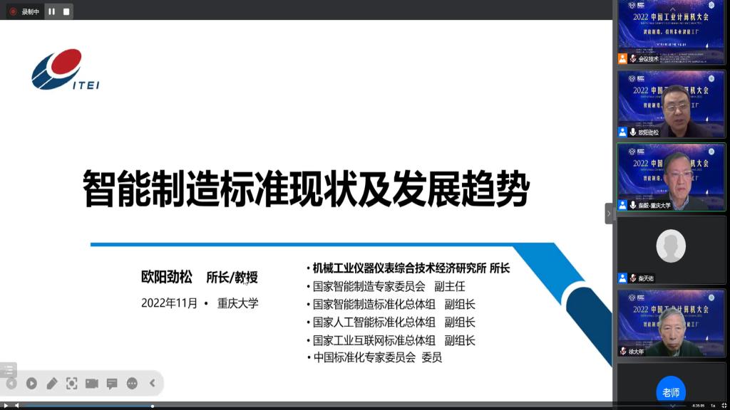 欧阳劲松所长作了“智能制造标准现状及发展趋势”的报告,他围绕国家智能制造发展总体规划,讲述了智能制造的定义和技术体系,以及智能制造国际化标国标准化组织和活动,分析了我国的智能制造标准体系在“十四五”期间发展将要面临的问题,并给出了建议和思考;