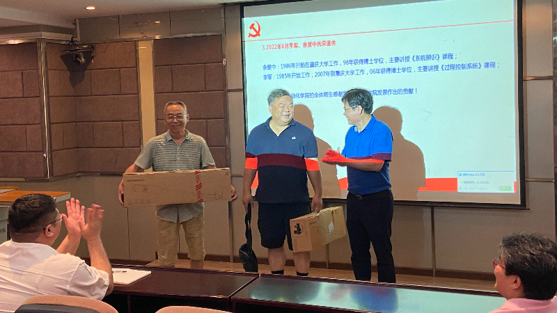 接着,林景栋代表学院向6月荣休的余楚中、李军老师赠送礼品,并送上感谢和祝福。余楚中、李军等2位老师分别发表感言。他们见证学院的发展与进步,感谢学院的关心与关怀。