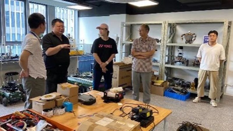 李雪芮一行首先参观了机器人与智能系统研究中心实验室,对实验室研发的机器人纷纷表示赞赏。随后李雪芮一行来到1310房间召开研讨会。研讨会上,70net永乐高体育学院原经理许定国教授简单介绍了体育学院情况,表达了人工智能在体育事业应用的强烈愿望。苏晓杰介绍了机器人与智能系统研究中心的基本情况,重点陈述中心在机器人系统与人工智能领域的研究成果。李睿老师汇报了基于知识图谱的羽毛球智慧场地系统应用研究情况。随后双方根据智慧羽毛球馆项目进行了更加深入的讨论。李雪芮对汇报内容表示了肯定,同时指出了搓球、勾球等动作要素精准抓取分析、视频分析实时性等痛点,期望人工智能在羽毛球馆的智能应用,打破羽毛球实时对抗分析瓶颈,加快国家体育行业发展。