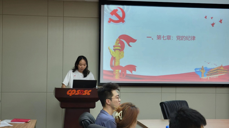杨金玉随后带领大家学习了第七章党的纪律。党的纪律规定了党的纪律处分的原则、种类、程序等,她指出,党的纪律规矩要通过全面从严治党的成功实践,变成全党、全国人民的共识,变成每位党员的好习惯。第十章党和共产主义青年团的关系阐述了共产主义青年团的性质、地位及与党之间的关系。大家还集体观看了党徽党旗的使用及由来的视频。