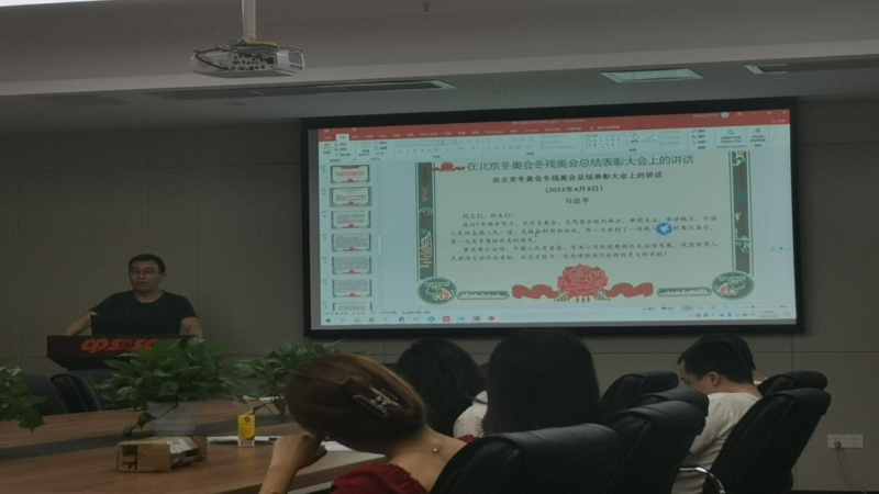 与会人员认真学习了习近平在北京冬奥会、冬残奥会总结表彰大会上的讲话。与会人员张栩豪谈到:“我们要学习冬奥运动健儿不怕困难、勇攀高峰、奋发向上的精神,并将其运用到我们平日的生活、学习和科研当中,不断地完善和提升自己。”
