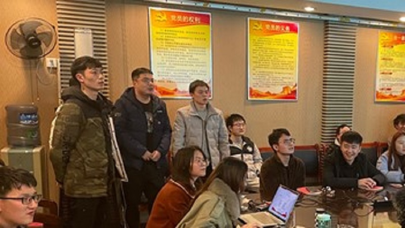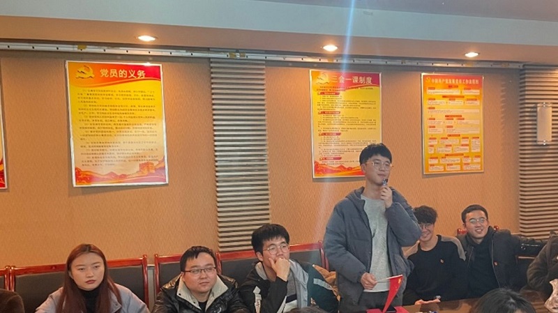 活动开始,全体党员同志一起聆听了习近平总书记二零二二年新年贺词,回望了党和国家历史上具有里程碑意义的大事。随后在胡锦圣同志的带领下,全体党员同志重温入党誓词,向党旗宣誓,在铮铮誓言中再次感受身为党员的荣誉感,敢为人先。