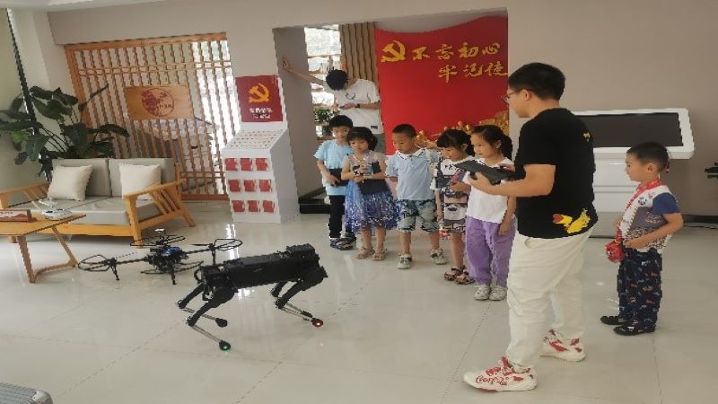 之后,在“探索电子世界”环节中,志愿者谭力珲给小朋友们展示了充满科技感的机器狗,小朋友们展现出了极大的兴趣。