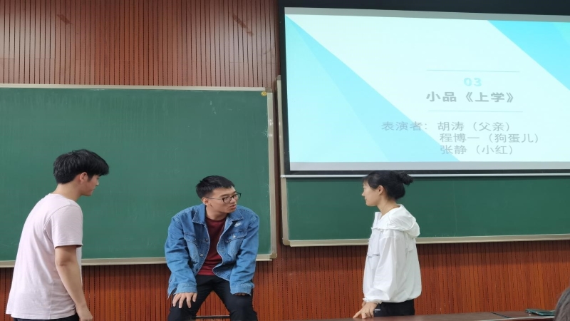 班会由诚信做人和诚信贷款两个部分组成。同学们在观看视频资料的基础上自由讨论和分享了诚信的重要性。胡涛、张静等同学为大家表演了小品《上学》,讲述了是一位承受儿子娶亲和女儿上学的双重经济压力的父亲得到了来自女儿录取高校开学资助的经济帮助的故事。小品声情并茂地演绎出了父亲的纠结与自责,以及女儿求学的渴望之情。