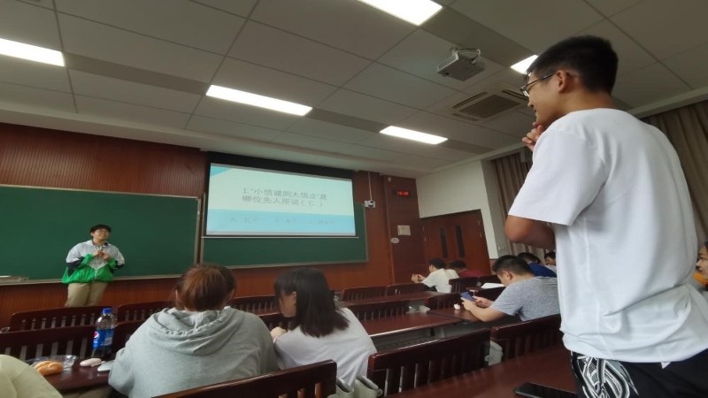 在班会最后的小游戏互动环节中,同学们踊跃回答了关于诚信教育的相关问题,通过名人名言同学们了解并学习了中国古代文学家对于诚信的看法和认识,深化了主题。