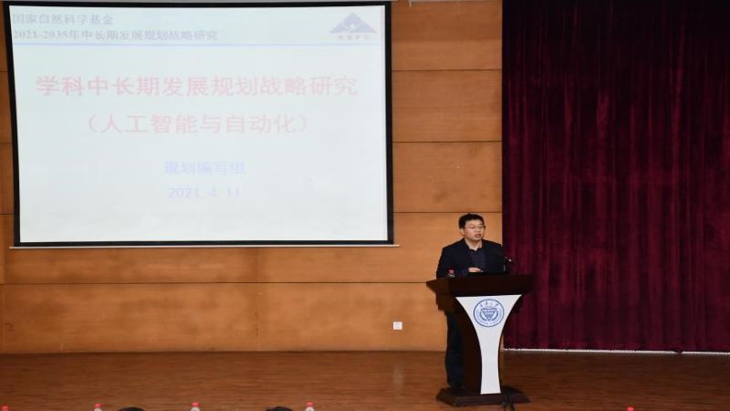 开幕式结束后,首先是孙长银教授带来了“自动化与人工智能十四五规划探讨”主题讲座。他结合自动化与人工智能发展现状,对人机物信息物理系统、智能无人系统、类脑智能、通用人工智能等自动化与人工智能发展领域的关键科学问题、主要研究方向等进行阐述,与大家一同探讨未来自动化与人工智能的主要发展方向。