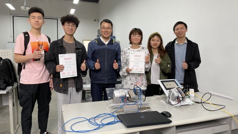座谈会后,易书波经理为参加2021年“菲尼克斯智能技术创新与应用大赛”初赛的获奖同学颁发了奖状和奖品,并鼓励参赛同学们勇于创新。最后,易经理向对同学们说到“预祝你们在2021年菲尼克斯大赛总决赛中取得优秀的成绩,成就你的菲凡未来”!