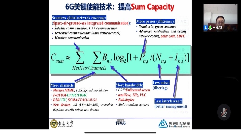 在报告中,王承祥教授首先为大家介绍了首先介绍第六代(6G)无线通信网络的全覆盖、全频谱、全应用、强安全的发展愿景、性能指标及关键使能技术,之后分析6G全频段全场景信道特性,并重点介绍融合6G全频段全场景信道特性的6G普适无线信道建模的最新进展,最后讨论了未来6G研究的挑战。