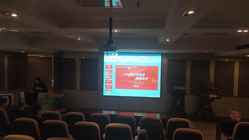 会议伊始,任玲介绍十九届五中全会概况和其主要内容,让在座同志们了解到“十三五”期间我国在各个方面取得的显著成就,无论是经济、科技、文化,还是环境保护都取得了重大发展。其次,了解到我国发展面临的复杂变化,机遇与挑战并存。面对错综复杂的国际形势,艰巨繁重的国内改革发展稳定任务特别是新冠肺炎疫情的严重冲击,全体党员应不忘初心,牢记使命,发奋图强,为中国特色社会主义的航船继续前行保驾护航。任玲还介绍了到2035年我国要实现的目标以及“十四五”期间经济社会发展的指导思想、遵循原则与主要目标,并播放了相关视频。