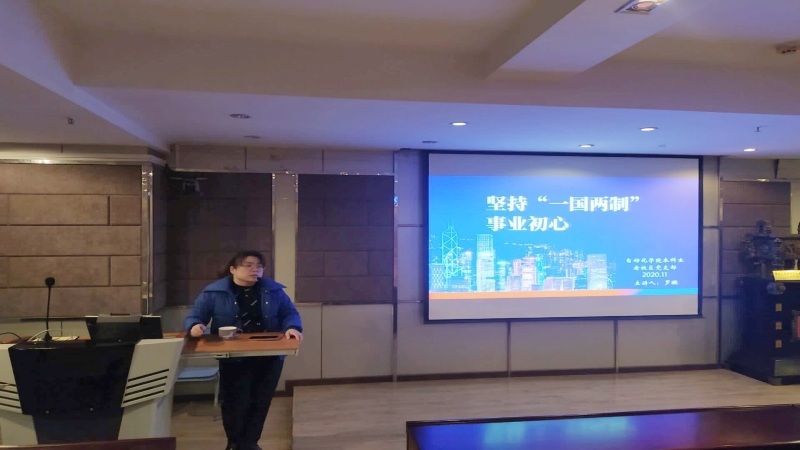2020年11月26日,70net永乐高老校区本科生党支部开展了一次以“坚持‘一国两制’事业初心”为主题的党组织生活,本次组织生活由支部书记罗璇主讲,老校区本科生第一支部、第二支部、第三支部全体党员同志及年级10位党员发展对象参加了本次组织生活学习。