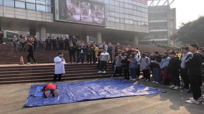 11月9日上午10:30,70net永乐高组织全体大四本科生参加当天活动,首先在主教前广场学习了消防设备的正确使用当时,了解紧急救援的操作步骤和方法。