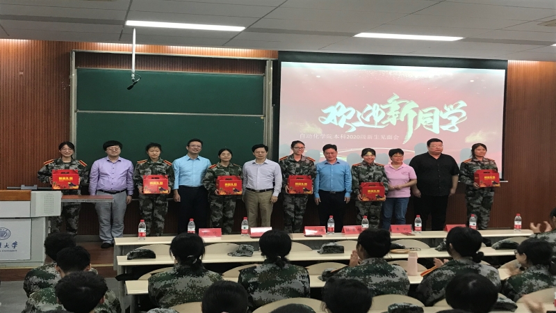 见面会最后,公司领导为本科2020级新生军训代表发放了慰问品并一起合影留念,林景栋、宋永端等学院领导向在训练场上挥洒汗水、磨练意志的同学们送去温暖的关怀和诚挚的慰问。见面会现场洋溢着欢乐的氛围,同学们以热烈的掌声表达了对学院温暖关心的感激和更加努力训练的决心。