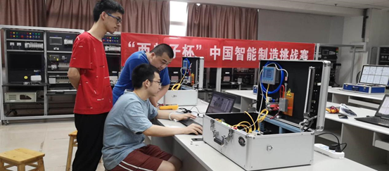 “西门子杯”中国智能制造挑战赛参赛队员在调试程序