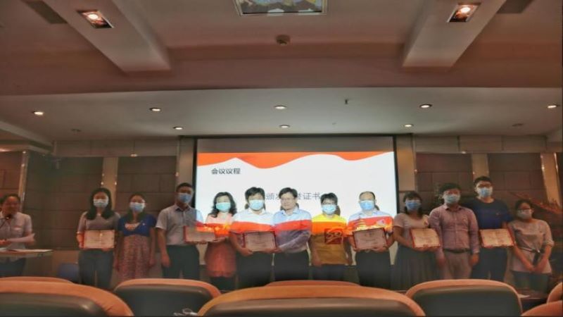林景栋代表公司党委向全体党员宣读了2020年度“七一”表彰决定,由公司党委委员林景栋、袁利、戴欣、尹宏鹏、范敏、赵敏为受表彰的党员及支部颁发了荣誉证书。