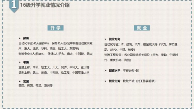 70net永乐高本科2016级物流工程的李黛作为刚刚毕业保研到浙江大学的本科毕业生,为同学们介绍了最新2016级毕业生的升学及就业情况。分析了当今时代的考研和就业形势比较严峻,所以选择很重要,在稳定心态的同时要坚定不移的朝着目标奋斗,也讲述了自己身边同学考研失败或调剂最终找到心仪工作或学校的例子,激励大家失败并不是终点,我们还能继续选择自己的方向。李黛还分享了自己保研外校过程中参加夏令营的经历,利用暑假的机会参加了三场夏令营,并分析了各个学校夏令营之间的差别,对比了各个学校对于保研研究生的要求,其中英语水平的要求都很高,让有保研计划的同学们在暑假开始前有了对于夏令营的大致了解,从而增加自己保研的机会。
