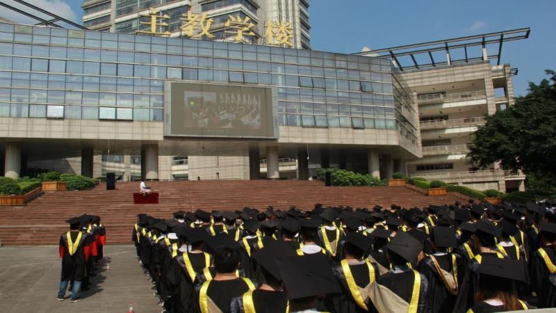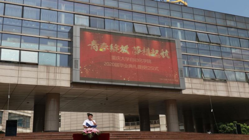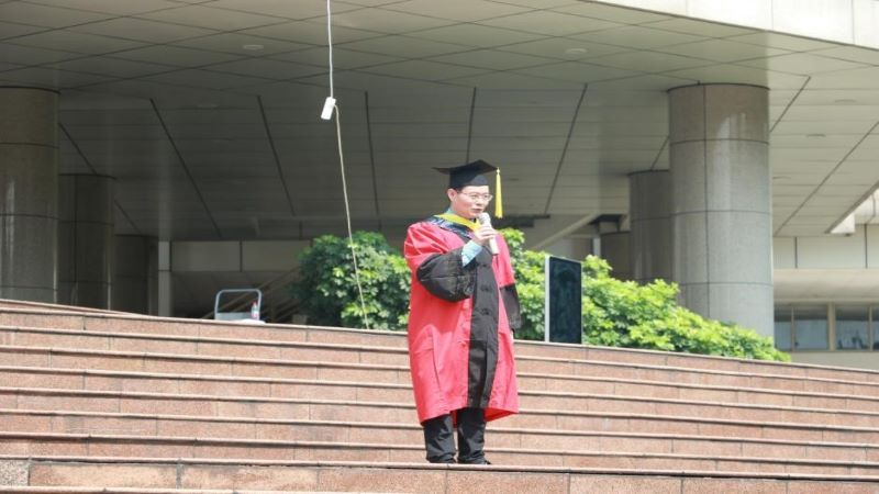 典礼在雄壮的国歌声中正式开始。宋永端经理在遥远的大洋彼岸发来祝福,他希冀各位同学能够成为对国家、对人类社会有用的贡献者和开拓者,强调学院将会是大家永远的精神家园。广场大屏幕上,一则短视频回顾了2020届全体毕业生在校生活的点点滴滴,以“相遇”、“相知”、“成长”为脉络,在《入海》的背景音乐中,每个班级、每位同学的影像和姓名一一出现,引起了阵阵欢呼,有的同学甚至留下了感慨激动的泪水。视频最后,林景栋回顾了疫情期间全院师生的良好表现,感谢每位老师和同学的辛勤付出,希望各位同学在毕业后能竭尽全力共建美好家园。