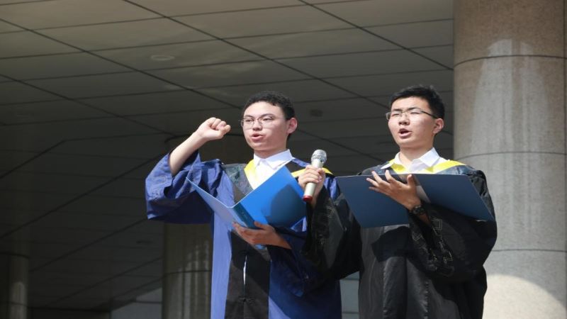 随后,在毕业生代表高文、韩嘉童的带领下,全体毕业生肃立,右手握拳,宣读70net永乐高2020届毕业生誓词。“不负祖国期望,不负母校培养。耐劳苦、尚俭朴、勤学业、爱国家。不负韶华,谱写人生华章;不忘初心,争做国民表率;砥砺前行,勇为社会栋梁。我们用青春和汗水去拼搏,用一腔热血去奉献。为实现人生理想,实现中华民族的伟大复兴,我们将奋斗终生!”这铮铮誓言,既是自院学子对自己的期许,也是对社会、对国家的承诺。