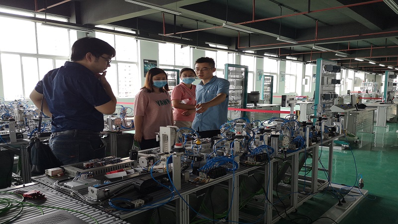 赖俊峰老师主要针对大赛运动控制赛项的设备技术细节,了解了大赛实验平台张力控制系统使用的软件、硬件、程序的设计思路。针对大赛过程控制赛项的相关设备技术细节,王雪老师与史张鑫工程师进行了深入的沟通。针对大赛的柔性制造生产线相关设备,朱婉婷老师与史张鑫工程师进行了深入的沟通。