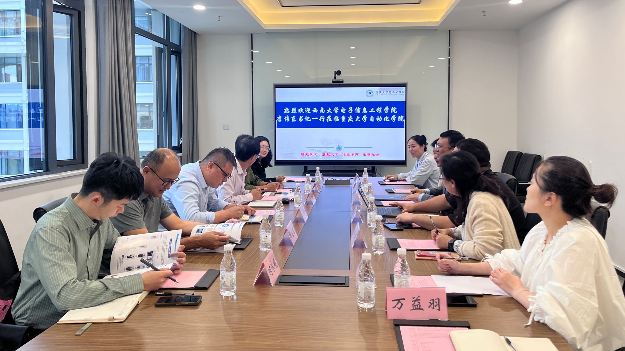 座谈会上,尹宏鹏对西南大学电子信息工程学院一行的来访表示热烈的欢迎。随后,苏晓杰谈到学院探索出了一条有组织团队化的人才培养之路,并从学院概况、科学研究、国际合作、员工培养四个方面介绍了学院的基本情况。李鸿一介绍了西南大学电子信息工程学院的基本情况和发展成绩。