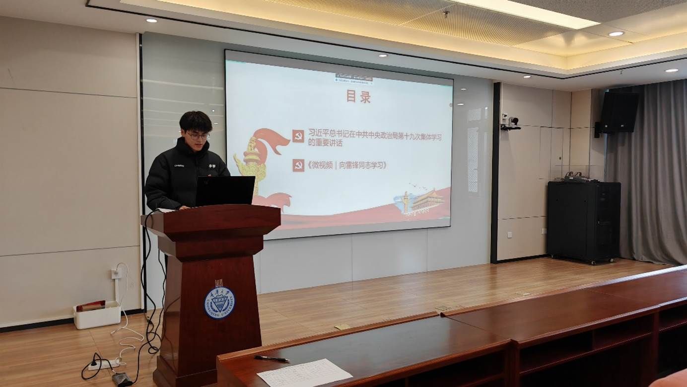 机器人智能第一党支部宣传委员钟浩带领大家进行了“第一议题”学习,集中学习了习近平总书记在中共中央政治局第十九次集体学习的重要讲话,强调要坚定不移地贯彻总体国家安全观,推动平安中国建设迈向更高水平。习近平总书记指出,平安中国建设只能加强,不能削弱。钟浩带领大家观看了《向雷锋同志学习》微视频,通过学习微视频,党员同志们深刻感受到了雷锋精神是一种崇高的境界,体现了对党、国家和人民的无限热爱。微视频的学习也激励各位党员将雷锋精神融入日常学习和生活中,以实际行动践行新时代青年党员的使命和担当。