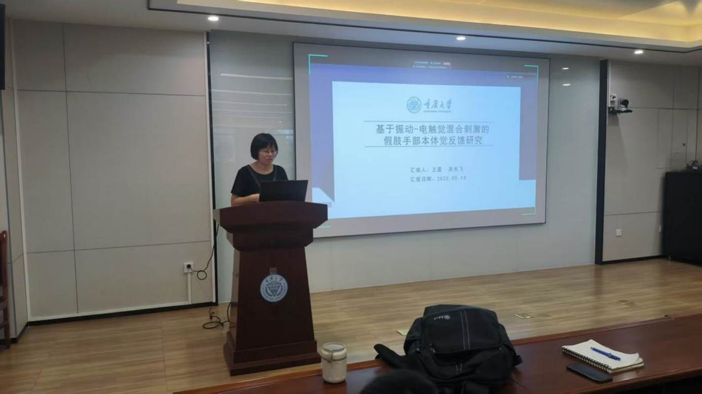 为进一步深化“党建引领科研”的实践创新,本次党日活动特别邀请了生物医学工程系行政教工党支部的王星和闵玲进行学术分享。王星分享了《基于振动-电触觉混合刺激的假肢手部本体觉反馈研究》,闵玲则带来了《面向前臂截肢者的肌电评估与虚拟训练系统研究》。她们从肌电假肢的研究意义和背景出发,详细介绍了肌电采集和评估平台的搭建过程,以及虚拟训练和执行层的设计思路,并通过真实评估与实验验证,深入阐述了肌电实验的重要意义。两位同志的分享内容充实、通俗易懂,为与会党员提供了了解肌电假肢前沿研究的新视角。