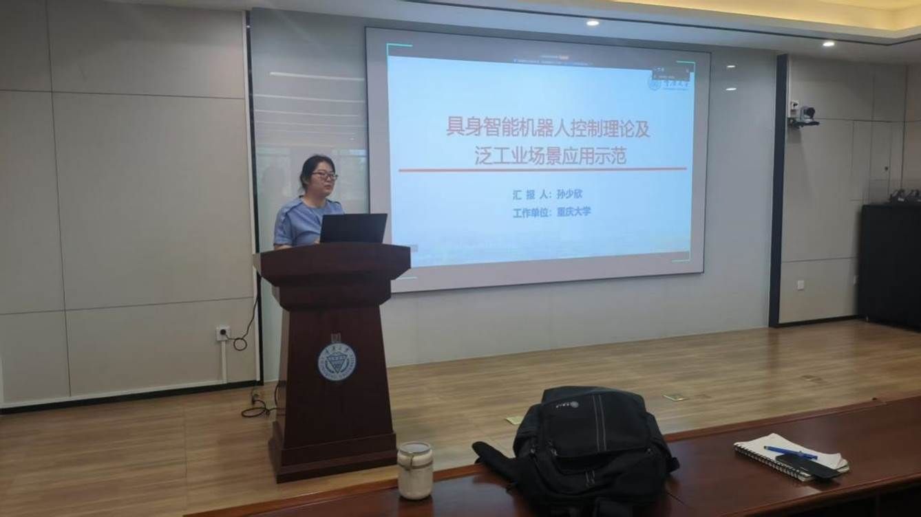 机器人智能第一党支部书记孙少欣分享了《具身智能机器人控制理论及泛工业场景应用示范》。她从国家战略部署和行业产业发展的高度,指出具身智能是国家发展的新质生产力,是实现产业升级的重要方向。她深入分析了当前具身智能机器人在精细操作、技能泛化等方面存在的问题,并详细汇报了团队在机器人动作原语自组织生成、运动控制与自适应协同优化等方面的研究内容和进展情况。