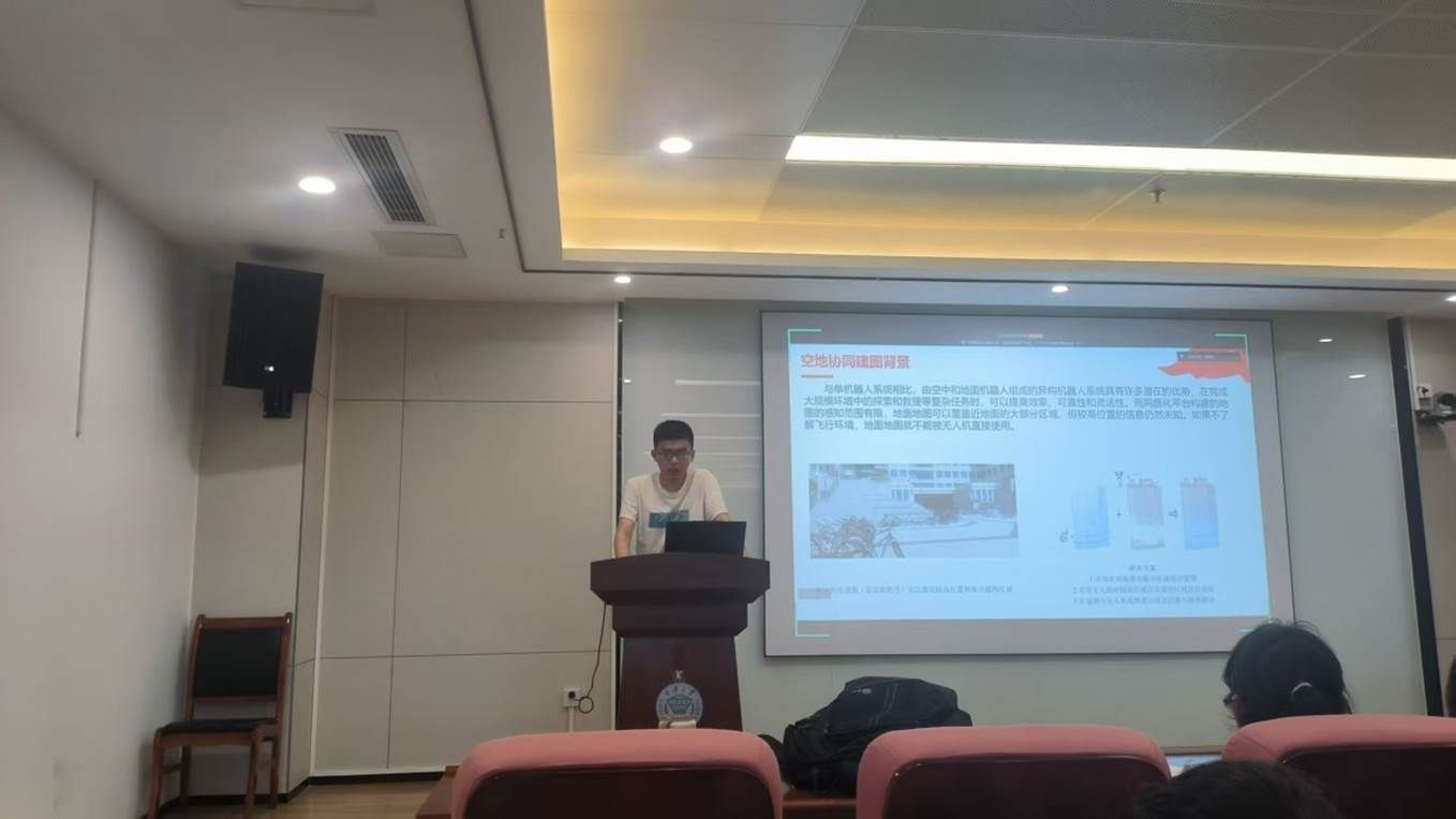 机器人智能第一、第二党支部的赵越和李亚鹏同志分别就《城市场景空地协同技术应用》进行了分享。李亚鹏从空地协同技术的基本概念入手,介绍了空地协同技术在多个领域的应用案例,强调了智能无人机感知技术在实现复杂环境下高效任务完成中的关键作用。其核心理念是通过功能互补,提升系统的环境适应性、任务执行效率和智能化水平。赵越则聚焦于空地协同建图技术,提出了一种集成了空地点云配准算法和基于姿态图的协作 SLAM 协同建图系统。该系统能够为异构机器人团队提供地面和空中、多路协同建图解决方案。赵越还详细介绍了搭建协作 SLAM 协同建图系统的硬件设计、实验调试步骤以及在真实场景下的实验效果,让大家对这一前沿技术有了更直观的认识。