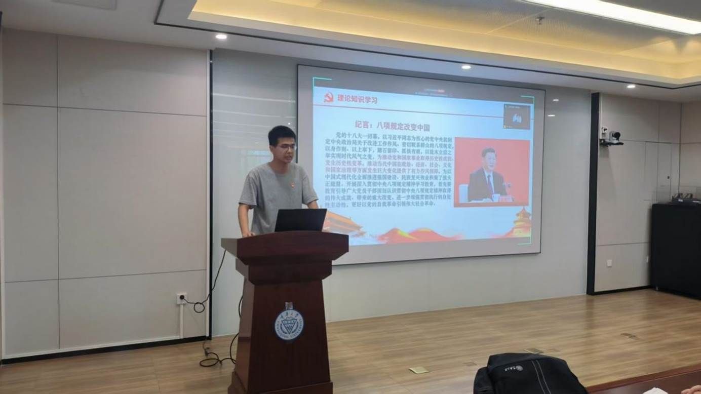 机器人智能第二党支部翁振海同志带领大家开展了“第一议题”学习,集中学习了《八项规定改变中国》。党的十八大刚一闭幕,以习近平同志为核心的党中央就制定了中央政治局关于改进工作作风、密切联系群众的八项规定。这一举措以上率下、以身作则,踏石留印、抓铁有痕,以“徙木立信”之举推动了时代风气的转变,为党和国家事业取得历史性成就、发生历史性变革提供了坚强保障。翁振海从政治、经济、社会、文化和国家治理多个维度,深入介绍了中央八项规定的重要意义。随后,他还带领大家学习了《中央八项规定成为促进高质量发展强大动力》微视频。通过视频学习,党员同志们更加直观、形象地感受到党中央八项规定对推动中国高质量发展的积极作用。