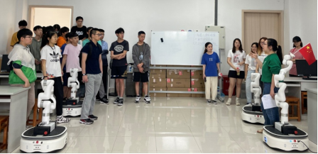 基于MARM(Move Arm)多自由度协作手臂,配置了深度视觉、双激光雷达和超声波传感器,通过自动导航、视觉处理、大范围移动、多点抓取、避障等实验,培养机器人本体设计、传感与检测、驱动与控制、智能与决策等的能力。
